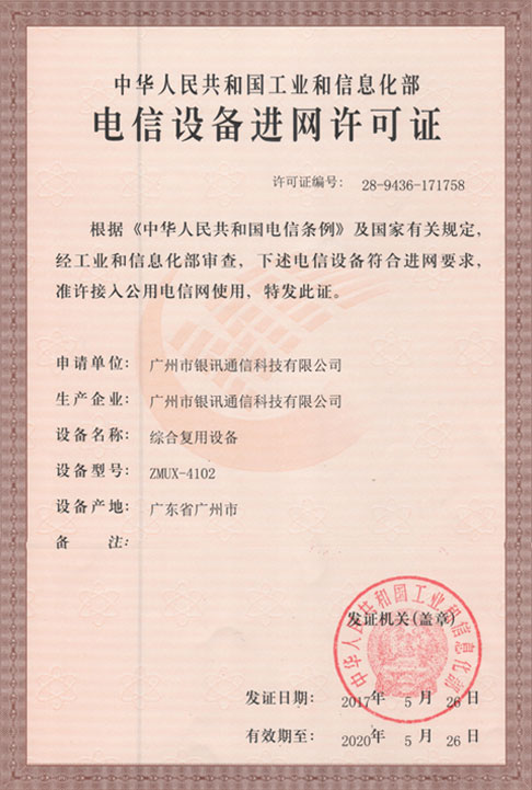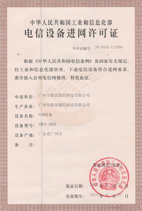 電信設(shè)備進網(wǎng)許可證