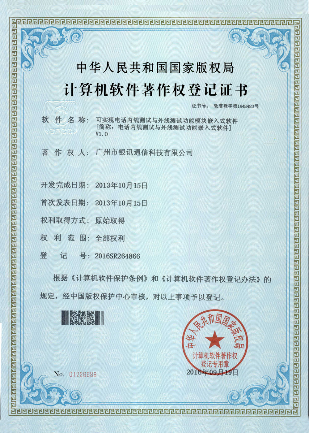 國家軟件著作權(quán)證書