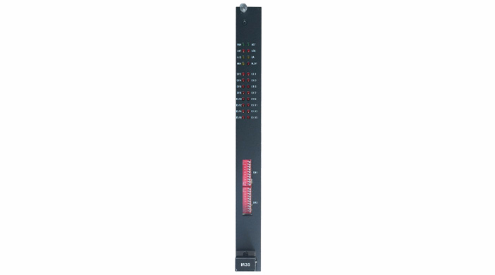 M35板卡提供靈活的交換網(wǎng)絡,可以實現(xiàn)任意E1之間任意64k信道的無阻塞全交叉連接,具有對隨路信令(CAS)處理能力,可以通過線路提取同步時鐘、或設備內部產(chǎn)生同步時鐘。