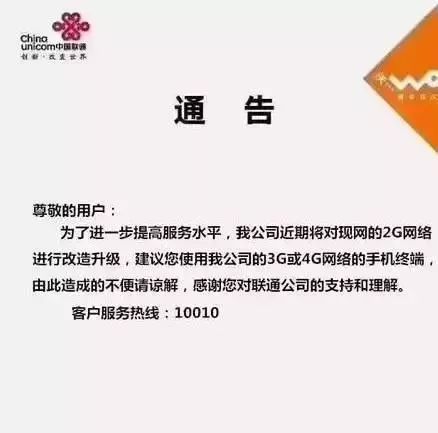 13日中國聯(lián)通確認(rèn)了聯(lián)通2G將開始關(guān)閉的消息。此前,網(wǎng)上有消息稱,聯(lián)通公司正在進(jìn)行2G基站減頻退服換機(jī)活動。中國聯(lián)通為了發(fā)展4G,開始加速退網(wǎng)2G,擬關(guān)停低話務(wù)基站101個。