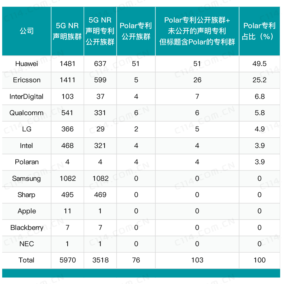 目前,5G Polar碼公布專利數(shù)量上,華為位列第一名,遠遠領先于高通。網(wǎng)絡上流傳了一份有關5G專利的數(shù)量清單。該份清單是以Polar碼為標準的專利技術。5G專利清單的詳細情況如下,截至2018年7月底,Polar碼技術領域共有103族專利,其中華為占據(jù)半壁江山,擁有51族專利,占比49.5%;愛立信位居第二,擁有26族,占總數(shù)的25.2%,美國Inter Digital公司以7族6.8%的占比位列第三。華為能有這樣的專利規(guī)模和占比確實是令人振奮。然而,3GPP(第三代合作伙伴計劃)定義了5G三大場景:eMBB,mMTC和URLLC。eMBB對應的是3D/超高清視頻等大流量移動寬帶業(yè)務,mMTC對應的是大規(guī)模物聯(lián)網(wǎng)業(yè)務,而URLLC對應的是如無人駕駛、工業(yè)自動化等需要低時延高可靠連接的業(yè)務。在5G eMBB場景上,Polar為信令信道編碼方案,LDPC碼為數(shù)據(jù)信道編碼方案,這兩者基本上平分秋色。這就是說,在eMBB的單場景下,華為占據(jù)較多的Polar碼專利。至于華為的LDPC編碼(高通主導的編碼技術)的專利數(shù)量,有網(wǎng)絡數(shù)據(jù)顯示為41項,相較國外廠商特別是高通等并不占優(yōu)勢。另外,我們目前無法獲知華為和中興在5G其他兩大場景下的專利情況。當然,這一方面既需要3GPP先定mMTC和URLLC的編碼方案,另外一方面也需要國內(nèi)的中興和華為能夠繼續(xù)在mMTC和URLLC場景專利上實現(xiàn)大的突破。另外,有網(wǎng)絡公開數(shù)據(jù)顯示,華為擁有的5G核心專利占比大約為26%,專利占比高居各廠商榜首。但是對于26%的專利占比數(shù)據(jù),我們無法證實。
